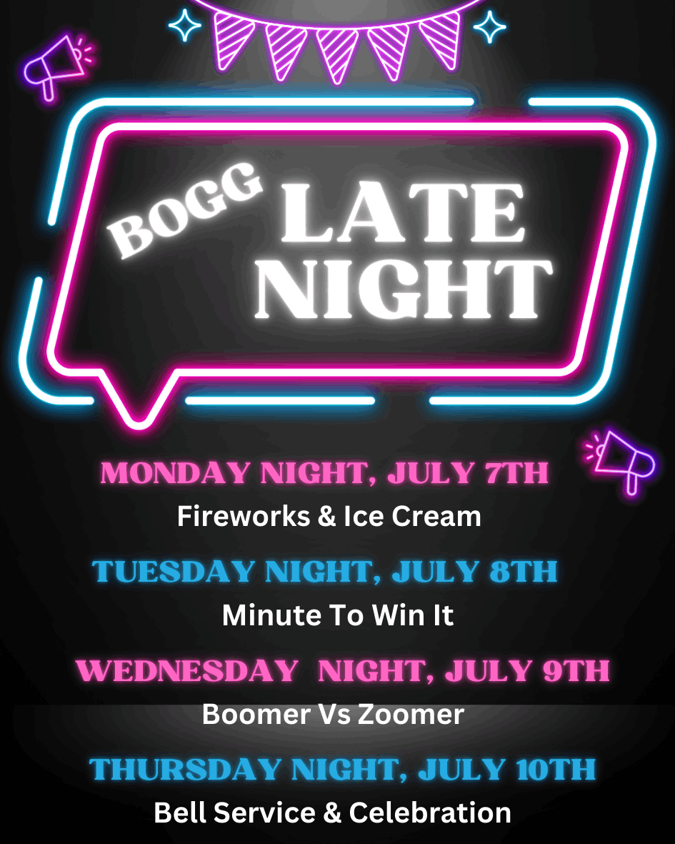 In 2001, our National camp week 1 changed their name to The Bogg...and this year The Bogg has a great week of camp planned for all students, from Middle School through College.